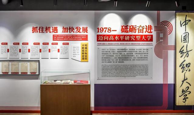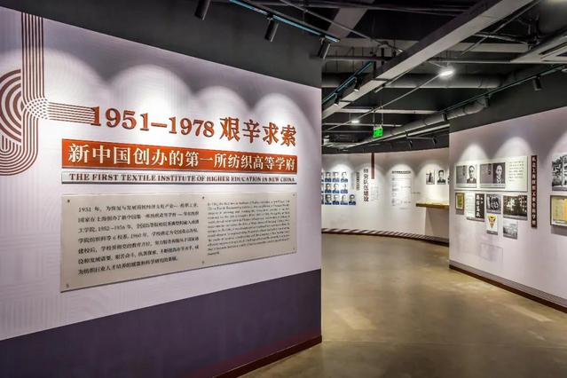东华大学校史馆始建于2001年五十周年校庆之际。2006年10月改建,2011年值六十周年校庆之际改版,2021年值七十周年校庆之际,校史馆全新上线。校史馆共有两个展厅,分为上下两篇。上篇为“艰辛求索,建设新中国第一所纺织高等学府(1951—1978)”,全面回顾了学校作为新中国第一所纺织高等学府,在发展纺织高等教育和振兴纺织大国中发挥的重要作用。下篇为“砺志改革,迈向有特色的高水平大学(1978— )”,集中展现了自十一届三中全会以来,学校由一所单科性的纺织院校逐步发展成为以工为主、工理管文等相结合的多科性大学,并迈向有特色的高水平大学的历史进程。校史陈列以时间为经,以领域为纬,以文化为魂,再现了老一辈华纺人到新一代东华人执著追求的奋斗历程。穿越时空的记忆,艰辛与汗水相伴,光荣与梦想交织,这里已成为东华人的一方精神家园……